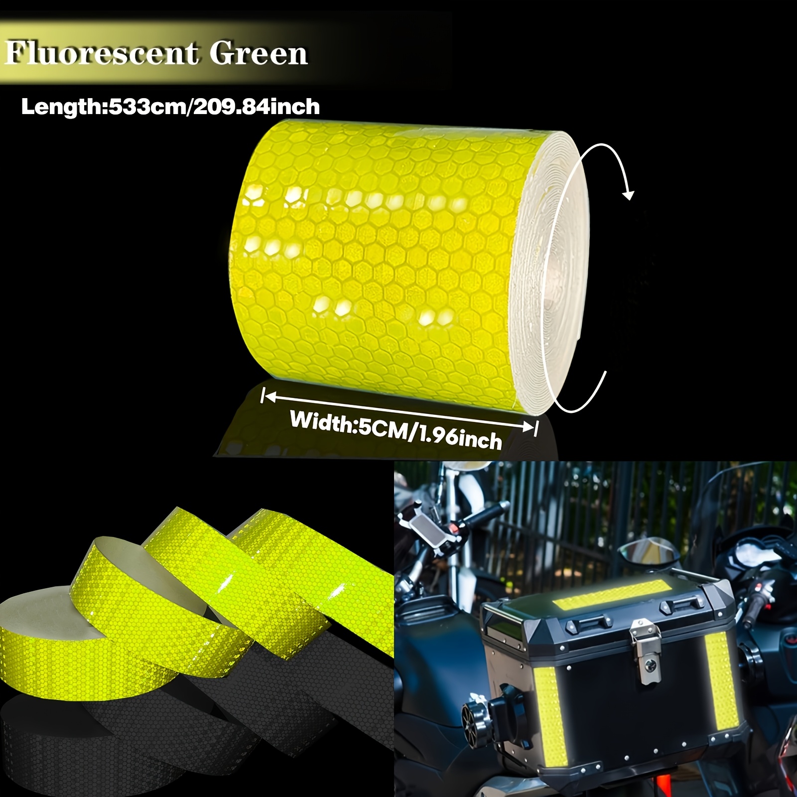 TEMU 단색 격자무늬 반사 스티커 533cm/209.84인치, 고가시성 내구성 반사 접착 테이프, 야간 시인성 위험 경고, 도로 안전용 트럭 반사 테이프, 자동차 및 라이딩용 스티커 7가지 색상