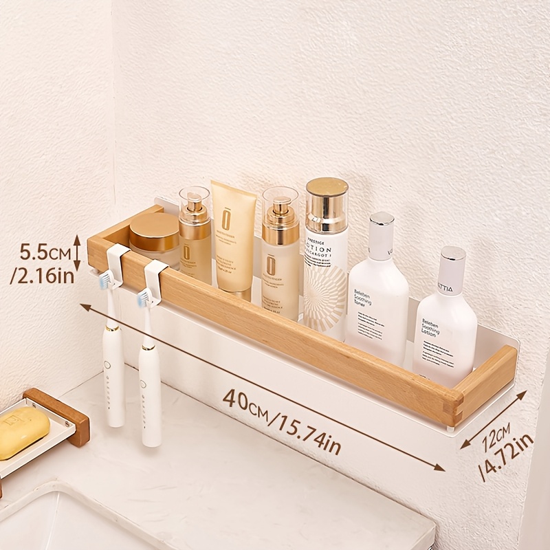 TEMU 벽걸이 화장실 선반, 가정용 수납 정리대 - 1개 샤워 선반 욕실 수납대 + 2개 멀티 훅, 욕실 정리대, 수납 솔루션