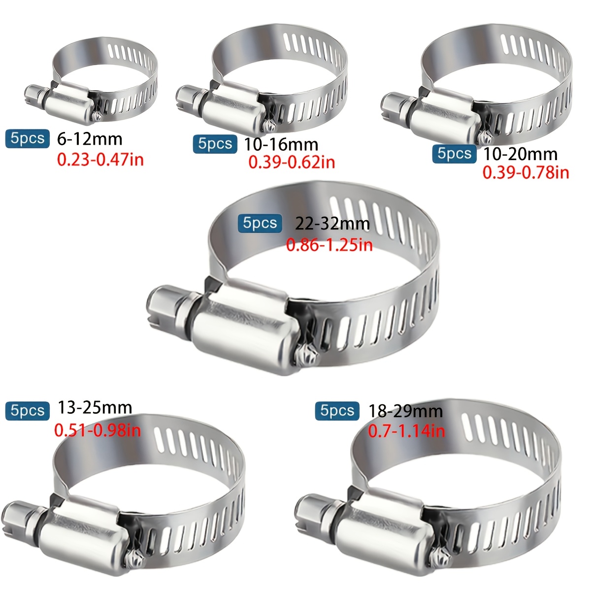 TEMU 30개 고품질 스테인리스 스틸 호스 클램프 세트, 조절 가능한 조임 설계, 0.23인치-1.25인치/6mm-32mm 나사산 호스 클램프 호환, 금속 원형 슬리브 호스 클램프 액세서리, 파이프 수리, 자동차 정비 및 가정용에 이상적