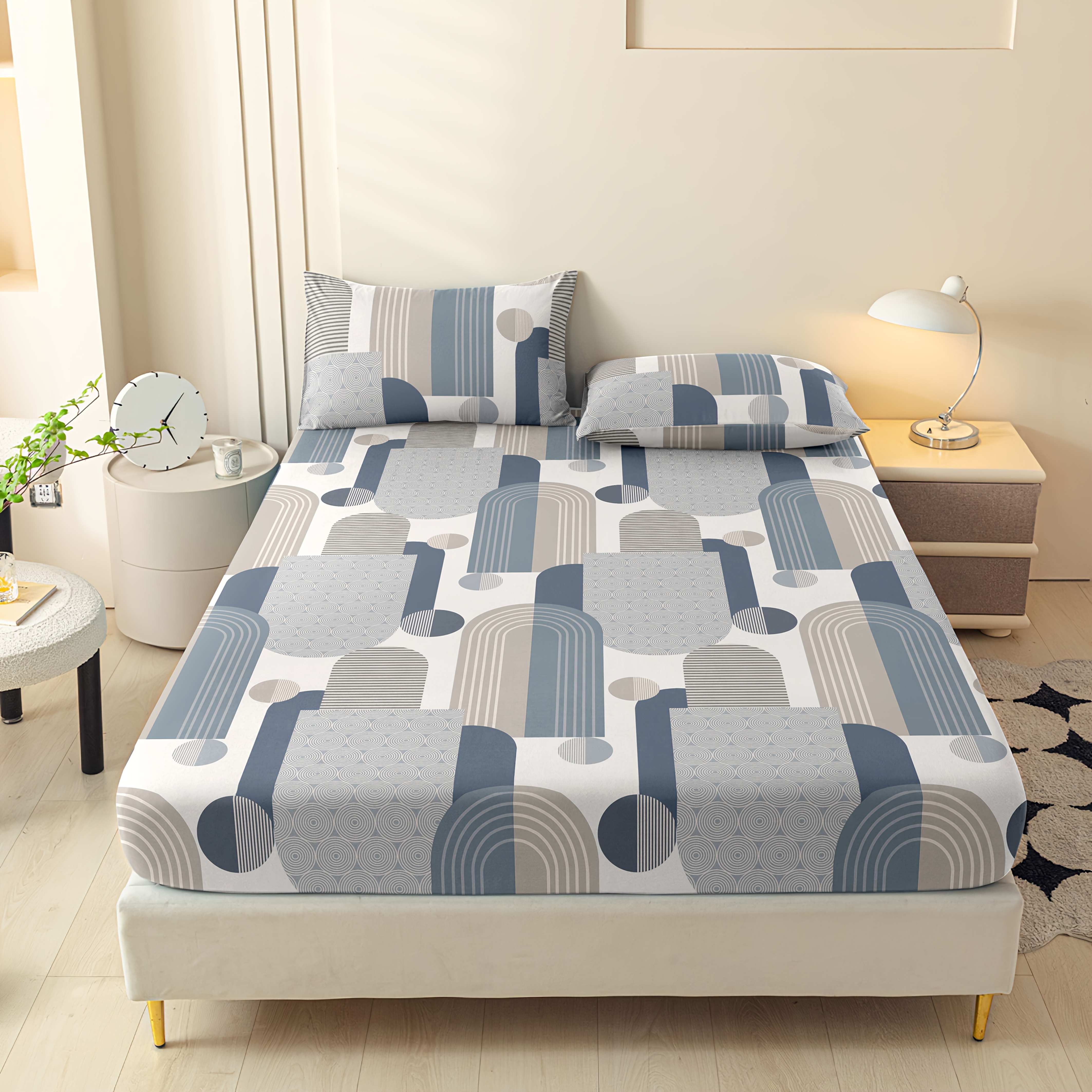 TEMU 3피스 기하학적 침구 세트, 세련된 클래식 디자인으로 부드럽고 편안한 침실 및 게스트룸용. 피트드 시트 1개와 베개커버 2개 포함, 충전재 없음