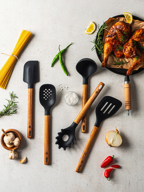 우드 손잡이 실리콘 국자 뒤집개 요리스푼 키친툴 조리도구 6종