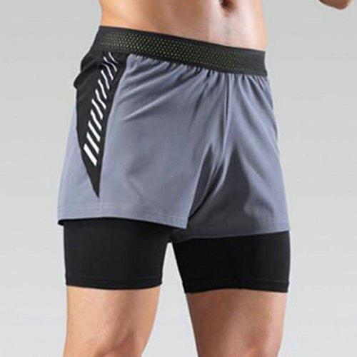 남성용 2 in 1 이중 레이어 스포츠 반바지 트레이닝복 짐 피트니스 조깅 운동복 하의