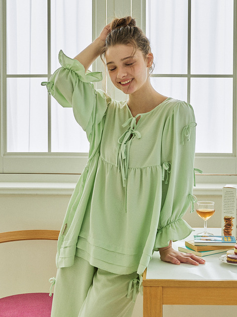 [울랄라파자마] 베르다 긴팔 투피스 라임 (40수)