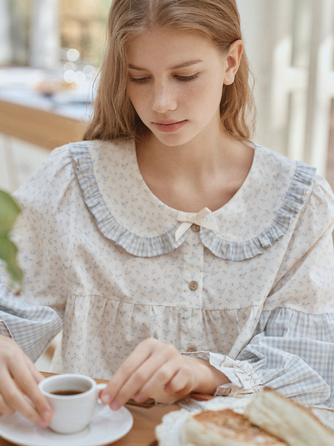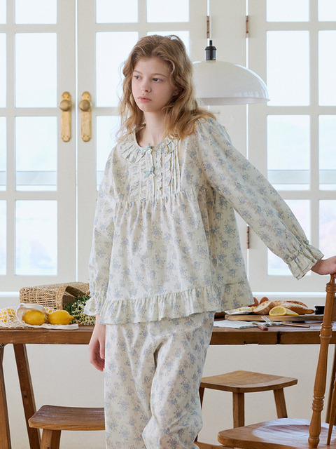 [울랄라파자마] 실비에 긴팔 투피스 빈티지블루 (40수)