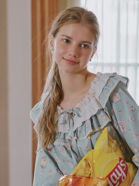 [울랄라파자마] 포멜로 긴팔 투피스 베이비블루 (40수)