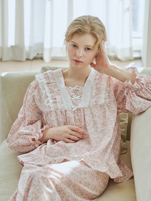 [울랄라파자마] 로나 긴팔 투피스 핑크 (40수)