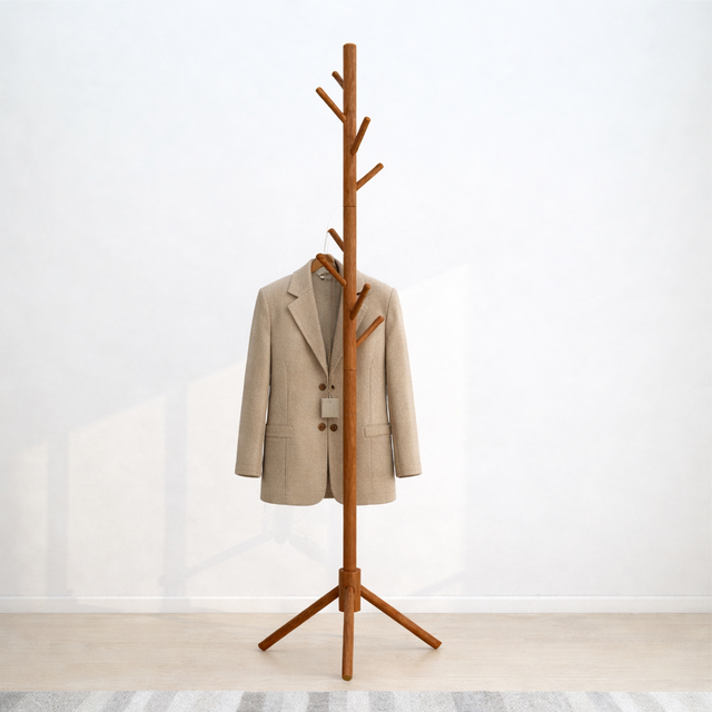 대나무 원목 스탠드 행거 외투 옷걸이, 브라운
