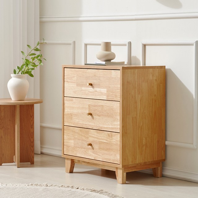 자연친화적인 거실,침실용 원목 서랍장 3단 80cm P0000BYF