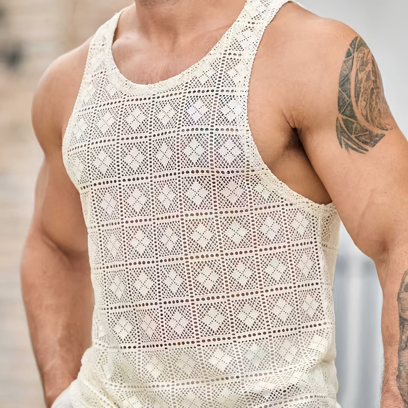 TEMU 남성용 캐주얼 텍스처 패브릭 조끼, 일상 및 휴가용, 여름에 이상적. 엠보싱 및 자카드 패브릭 남성용 숏 조끼