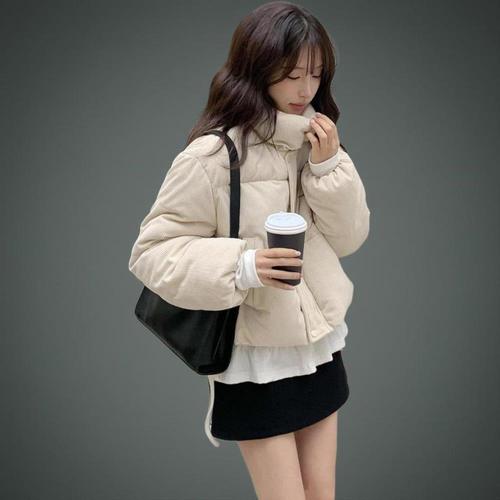 |CMJ6C2F|여성용 일상 스탠드넥 골덴 웰론 숏패딩 재킷