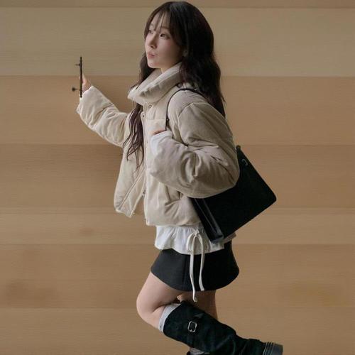 패딩 코듀로이 하이넥 숏 웰론 겨울 스트링 여성 방한