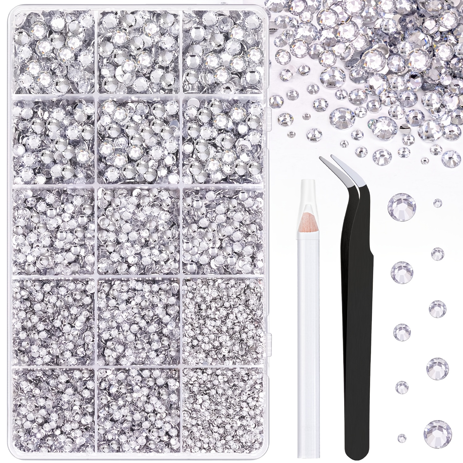 TEMU 15칸 5500개 레진 , 핀셋 포함, 수공예에 적합, 투명 평평한 바닥 보석, DIY 공예, 의류, 컵, 신발, 직물 및 네일 아트에 적합!