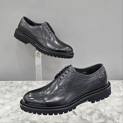 VONIN 남성용 천연소가죽 도트라인 윙팁더비구두 INF277BK