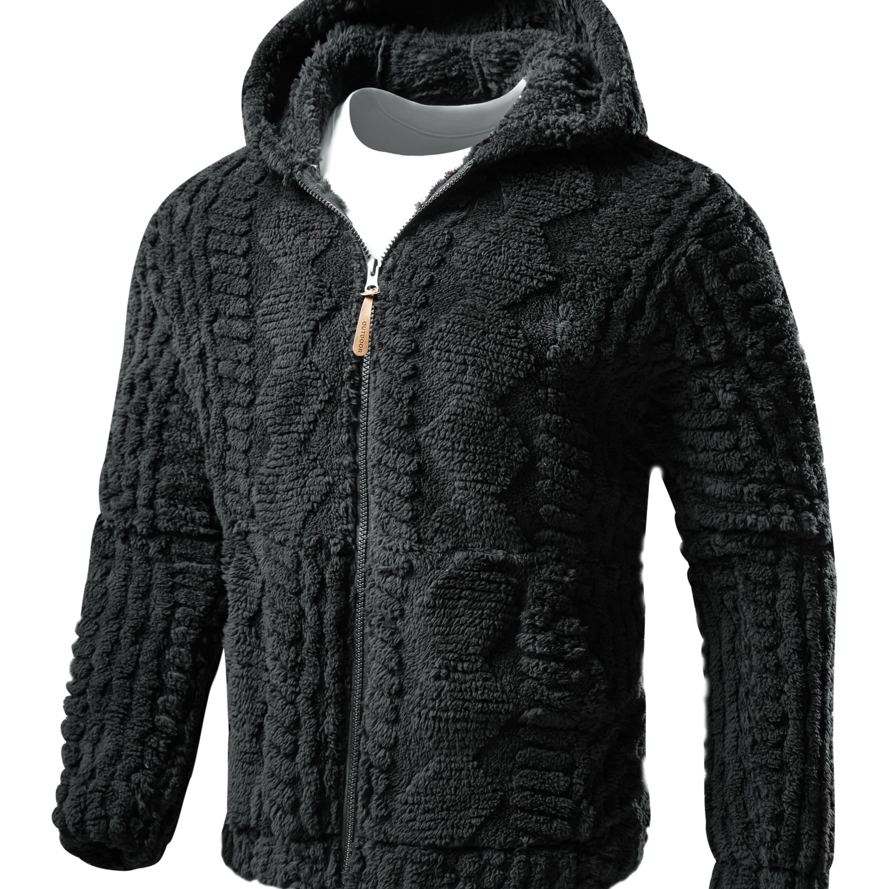 TEMU 남성용 겨울 따뜻한 후드 재킷, 지퍼 포켓, 후드, 루즈핏이 있는 방풍 겨울 코트 - 야외 활동, 러닝, 낚시 및 캐주얼 웨어에 적합한 단열 겉옷 - 단색 디자인 골지 재킷.