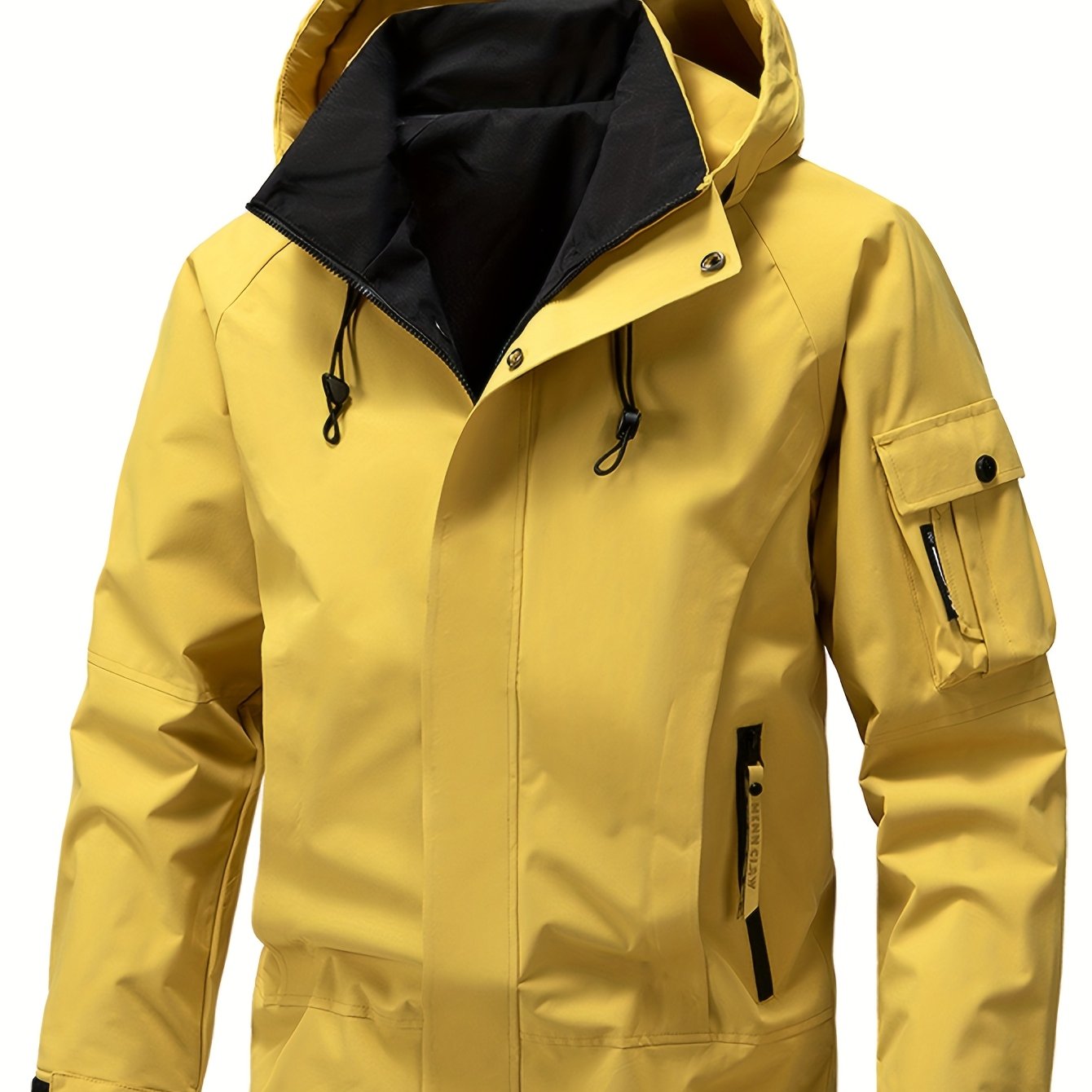 TEMU 남성 자켓, 아웃도어 스포츠 후드 - 작업복 디자인 코리안 스타일 트렌디한 방풍 보온 쉘 코트, 봄과 가을 시즌용. 아웃도어 하이킹, 등산, 사이클링에 적합, 진저 옐로우 포함 다양한 컬러, 하이킹 재킷,스포티한 룩,캐주얼 아우터웨어,통기성 소재,남성용 ,모험을 찾는 이들