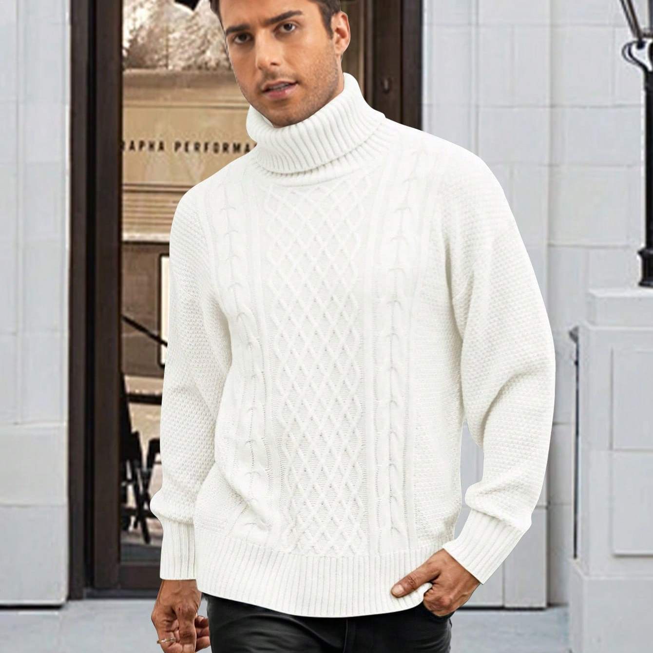 TEMU 남성용 캐주얼 풀오버 스웨터 (가을/겨울), 단색, 하이넥, 따뜻한 니트, 긴소매