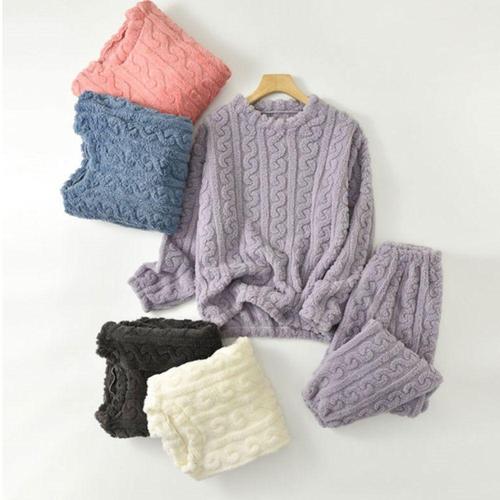 수면 털 기모 라운드 긴팔 긴바지 겨울 상하 잠옷 세트 WFMU25L