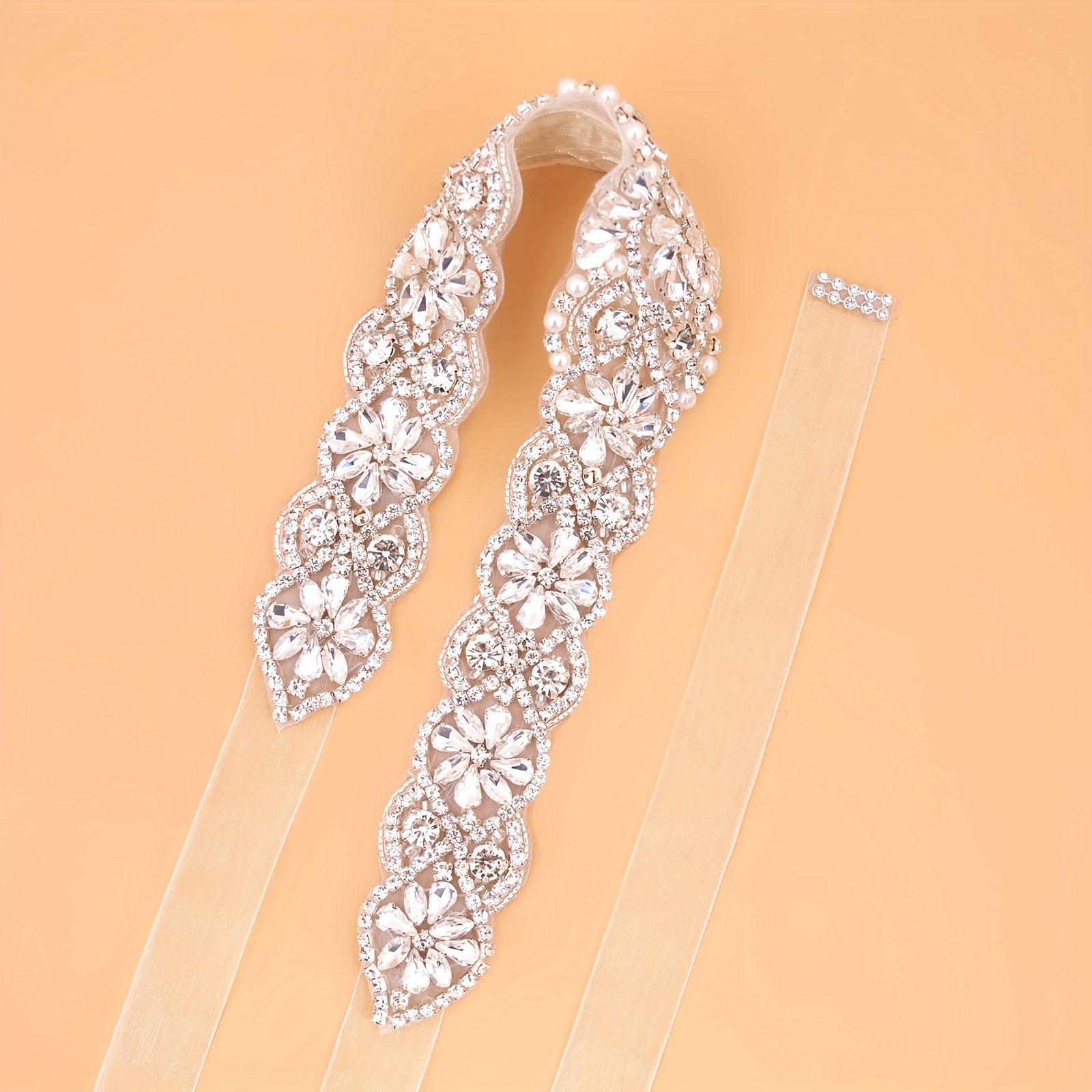 TEMU 실버 라인스톤 웨딩 드레스 벨트 및 허리 시너, 브라이덜 가운 장식, 신부 라인스톤 장식
