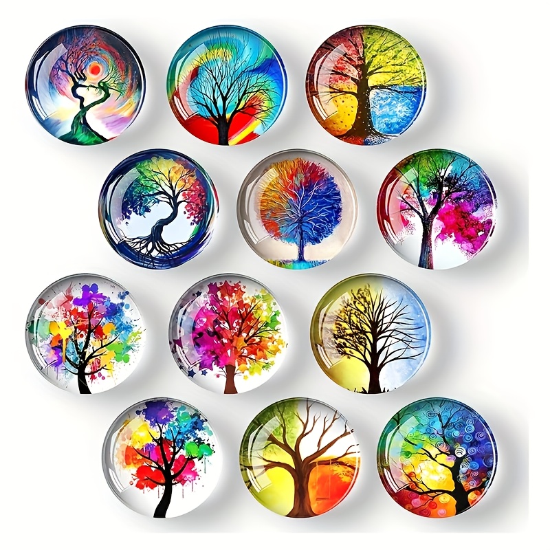TEMU 12개 세트 생명의 나무 냉장고 자석 – 강력한 접착력의 둥근 유리 장식용 냉장고 마그네틱, 내구성 있는 화이트보드 & 금속 표면 스티커 (1.2인치) – 집, 사무실, 식기세척기, 캐비닛, 사물함용 – 영적 선물, 젠 데코, 주방 액세서리