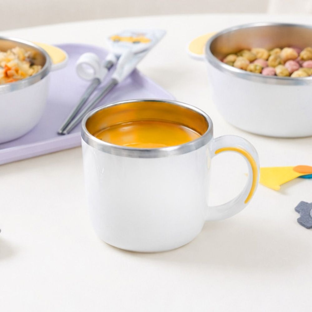국산 화이트미피 유아 어린이집 유치원 물컵 양치컵 스텐304 아동 돌아기 연습 우유컵