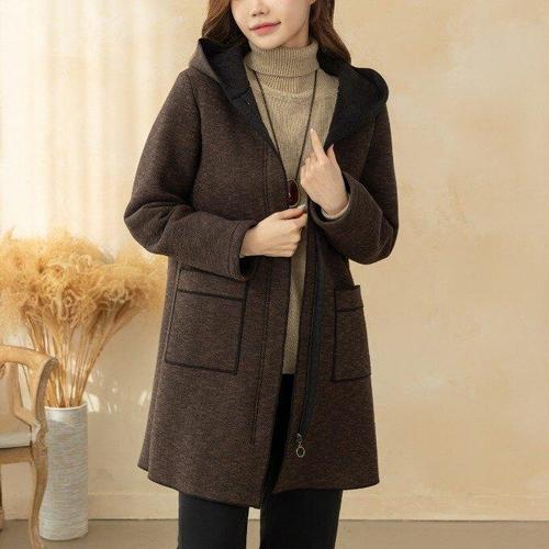 [디얼마미]헤링본 융털 후드 자켓 /마담 미시 중년 여성 빅사이즈 40대 50대