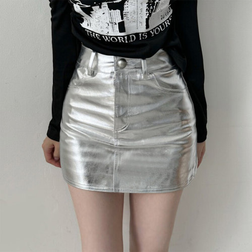 입꼬 / 은갈치 글로시 실버 미니 스커트