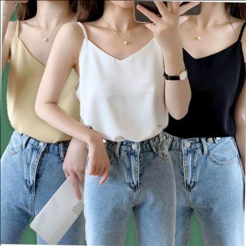 끈나시 슬리브리스 탑 브이넥 여름이너 기본슬리 (WFKPDIP)