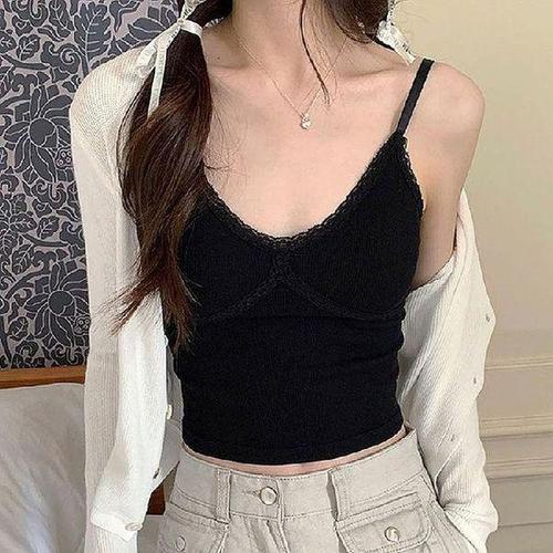 [셀러허브_여성트랜드패션]ONM 여성 레이스 골지 슬림 브이넥 캡내장 나시 이너
