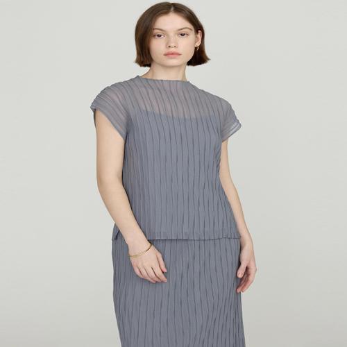 [D-PLEATS][이너 SET] 블루 플리츠 캡소매 반팔 티셔츠 (DLTS5BP36B1)