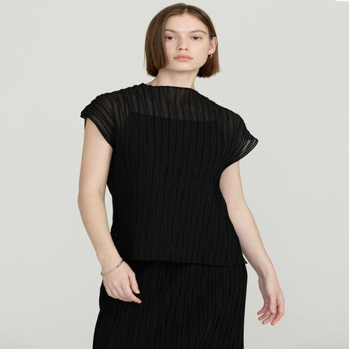 [D-PLEATS][이너 SET] 블랙 플리츠 캡소매 반팔 티셔츠 (DLTS5BP36BK)