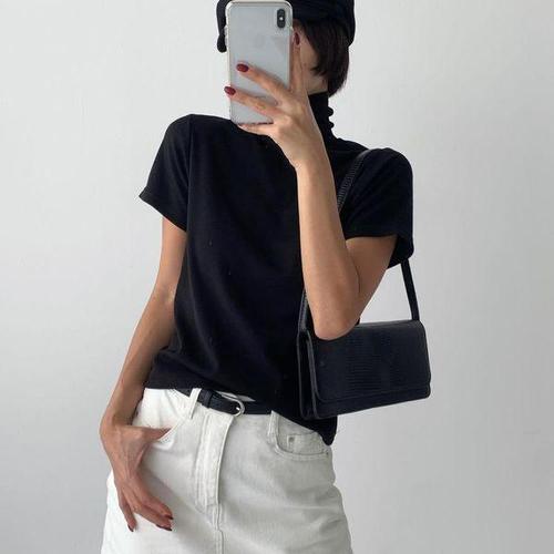 [신상오픈런]여성용 기모 반팔 목폴라 레이어드 스판 이너 티셔츠