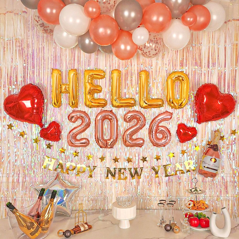 신년 연말 홈 파티 은박 이니셜 풍선 용품 HELLO 골드 숫자 로즈 세트