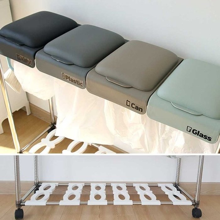가정용 재활용 분리수거함 커버 휴지통 이동식 쓰레기통