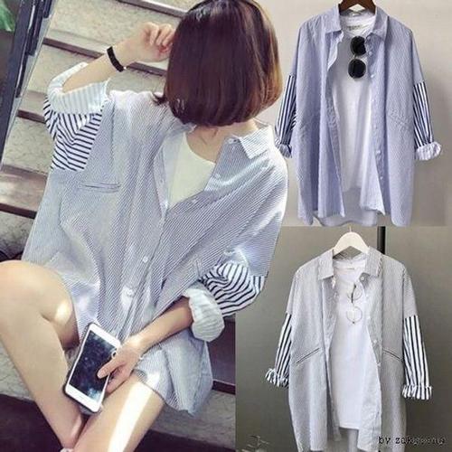 [에이치플러스몰](도매신) 패턴 걸스 와이셔츠 데일리셔츠 트렌디투톤 상의