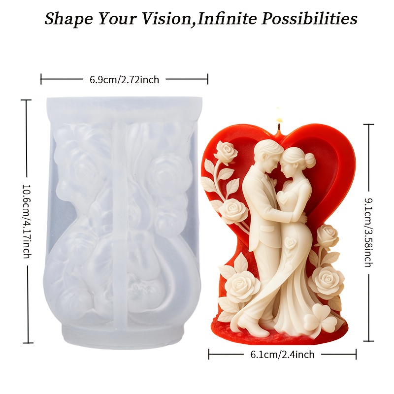 TEMU 레진 캐스팅 몰드 - 발렌타인데이 커플을 위한 로맨틱한 하트 모양 몰드. 사랑스러운 포즈와 주변의 장미의 섬세한 디테일이 특징입니다. 이 유연한 실리콘 몰드는 탈지 및 재사용이 용이합니다.
