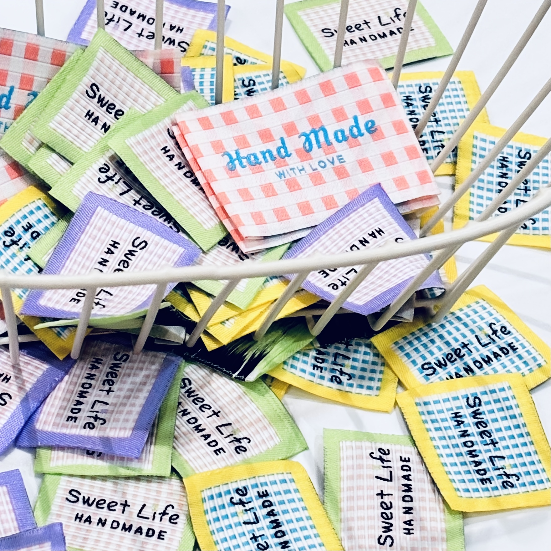 TEMU 20개 필수 수제 재봉 라벨, DIY 수제 귀여운 줄무늬 체크무늬 천 패브릭 라벨, DIY 재봉 레이스 패치 라벨, 옷, 모자, 스카프 재봉 공예용 태그