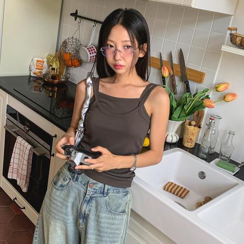 [신상오픈런]여성 무지컬러 스트랩 이중 민소매 탑