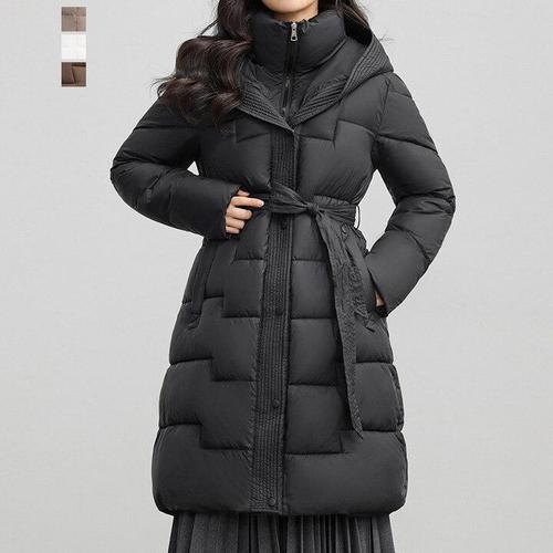 [퀸이즈][퀸이즈] [77까지]오비드 허리스트링 모던 퀄트 롱패딩