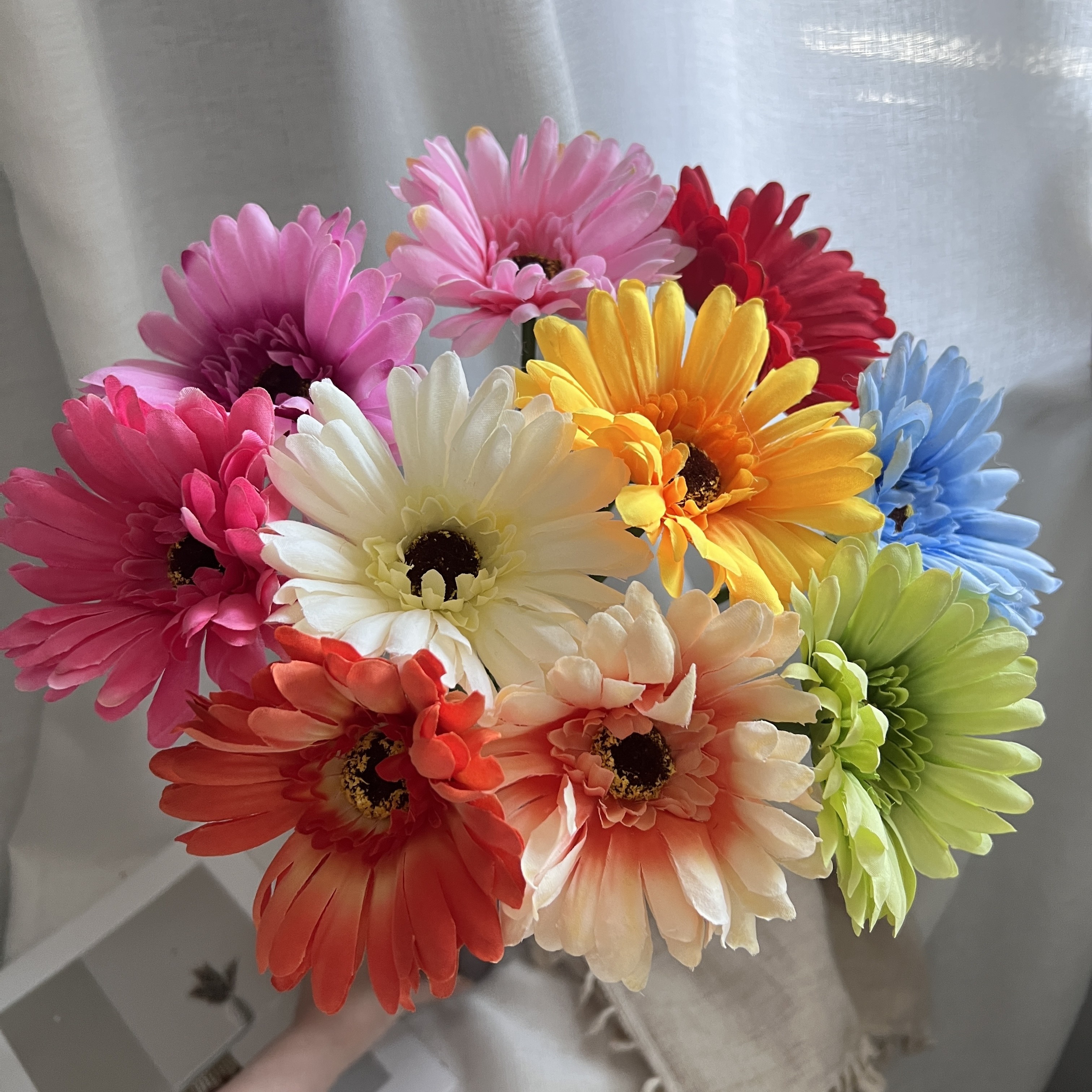 TEMU 혼합 색상 인조 꽃, 아프리카 데이지 10개