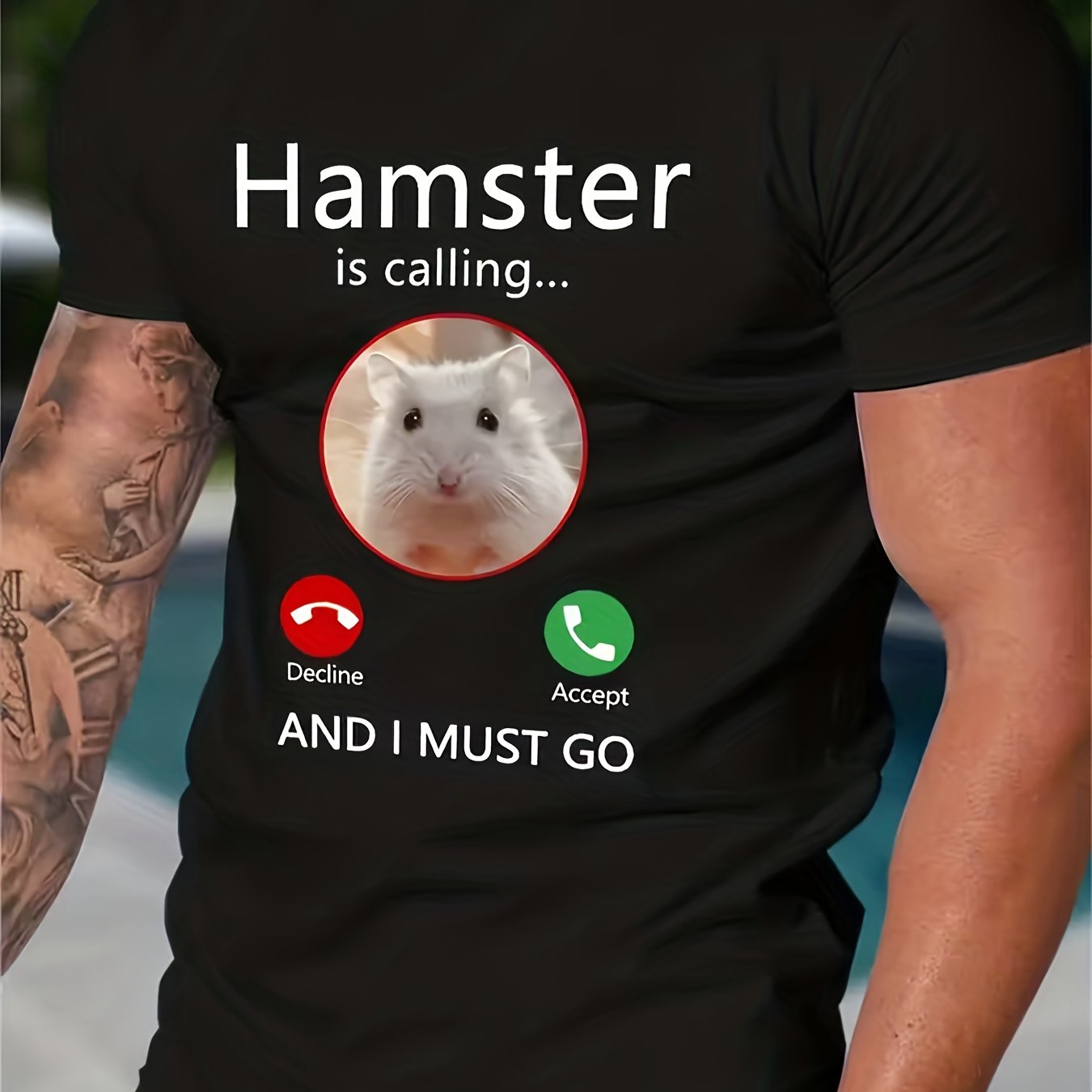 TEMU 남성용 웃긴 햄스터 전화 그래픽 티셔츠 - "햄스터가 전화하는 중" 햄스터 얼굴 & 전화 아이콘 - 가벼운 여름 캐주얼 라운드넥 티 - 튼튼한 원단 - 햄스터 애호가를 위한 이상적인 선물 - 세탁기 사용 가능 - 봄/여름/가을 데일리 셔츠|남자반팔티