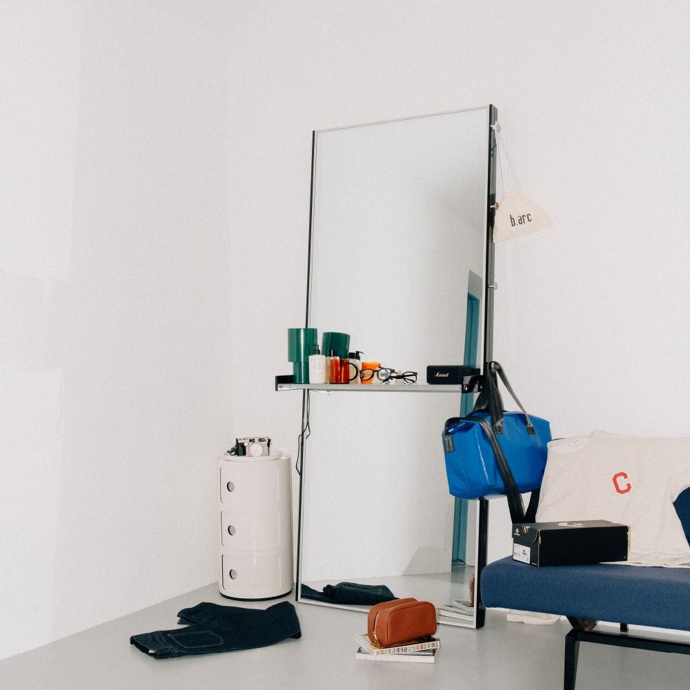 뷰티피크 직사각형 전신거울 3in1 스탠드 벽걸이 거치형 강화안전유리, 블랙