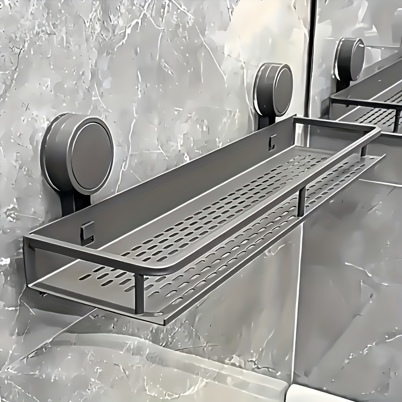 TEMU 헤비듀티 스테인리스 스틸 흡착식 샤워 선반 - 드릴 필요 없는 접착식 장착, 30cm/1인용 욕실 수납 선반, 다중 선반 공간 절약형 수직 정리대 (샴푸, 화장품, 샤워 & 욕조용) - 304 스틸, 샤워 캐디
