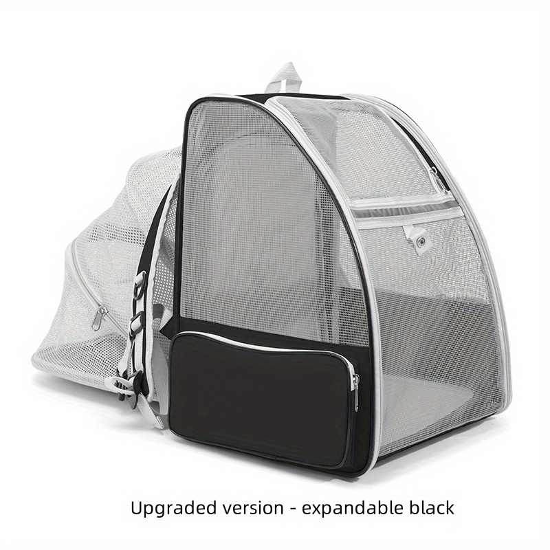 TEMU 업그레이드된 확장형 고양이 백팩 캐리어 - 조절 가능한 스트랩, 중간 크기 고양이를 위한 내구성 있는 폴리에스터 3면 통풍 메쉬, 학교 및 여행용, 안전한 지퍼백, 캐주얼 스타일 캐리어, 환기 메쉬 패널