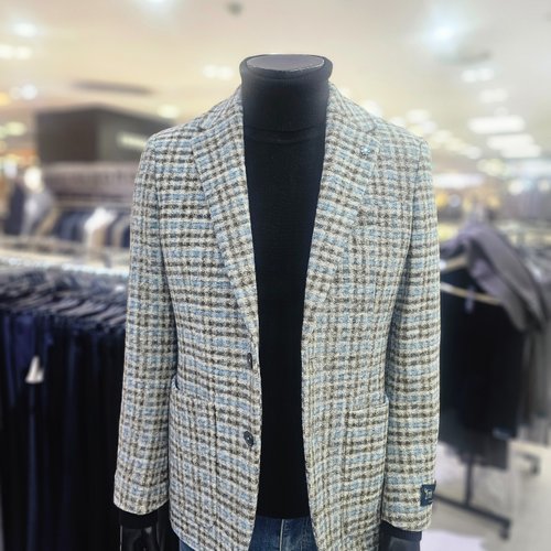 [바쏘옴므]블루 브라운 이태리 수입원단 글렌체크 울 코튼 모직 자켓 WSY3JS11ABU_DG