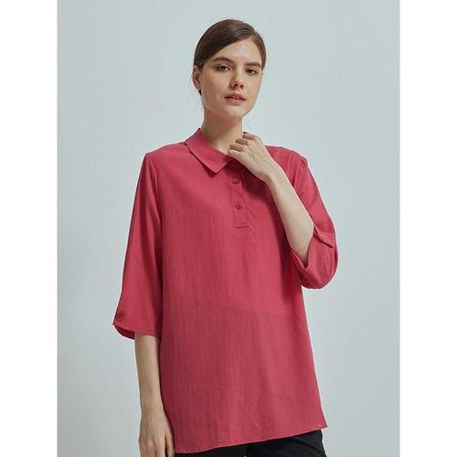 [크로커다일레이디]페미닌 인견 셔츠형 풀오버 블라우스 다크핑크 CLBMBL506