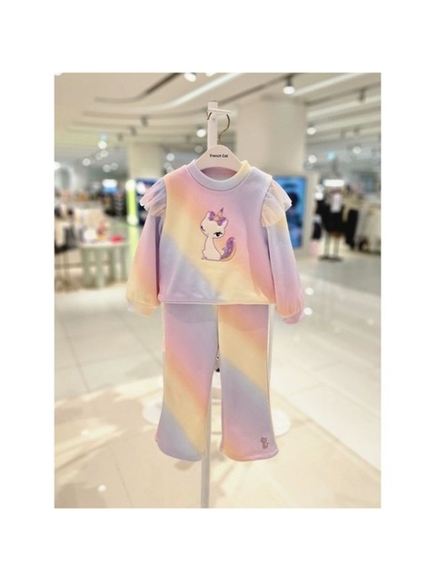 [프랜치캣] 멀티 골지 프릴티 레인보우바지 셋업 Q55DCT130/Q55DCP090