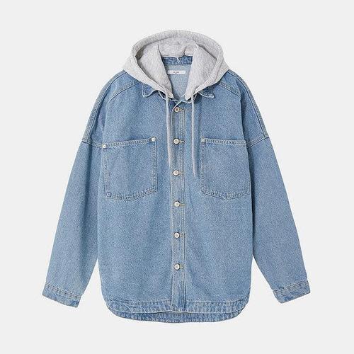 [이카룩]IKALOOK 루즈핏 탈부착 후드 데님 셔츠 CSH104