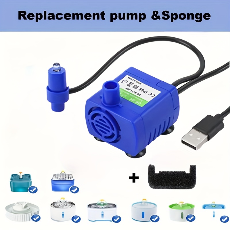 TEMU 고양이 정수기 펌프 (교체용 스펀지 포함), 원형, 큐브, 고양이 정수기 호환, 애완용 펌프 교체용, 배터리 없음