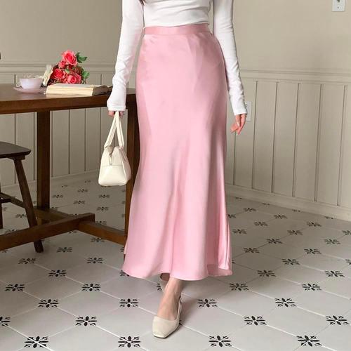 [다잇템]여자 백밴딩 새틴 인어공주 베이직 롱 스커트
