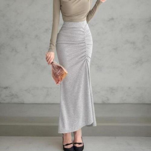 [다잇템]여성 롱 원컬러 인어공주 핀턱 스커트